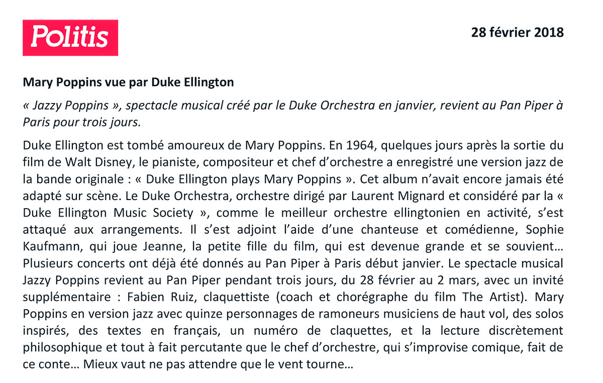 Politis – Février 2018 – Jazzy Poppins